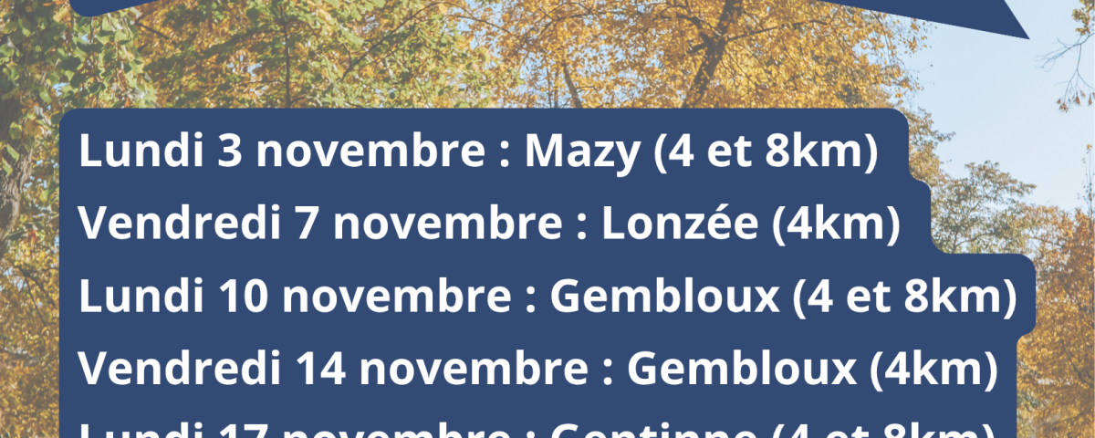 En novembre, nous continuons à vous proposer des circuits de 4 et de 8km. C’est l’occasion idéale pour prendre l’air, profiter des paysages et partager un moment chaleureux ensemble.